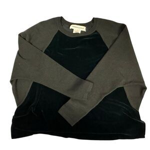 Super soft oversized mixed media sweater, Velour body with kit sides and sleeves. Wide dolman sleeves, relaxed fit