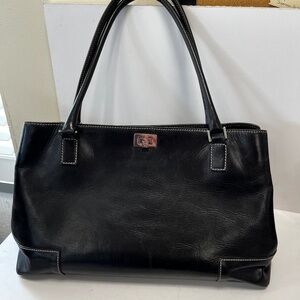 Beautiful Black leather satchel. Base measures 8x16”