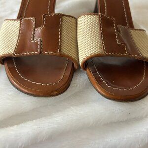 Lambertson Truex Sandals Womens 36.5 Made in Italy VTG Low Heel Brown Cream
