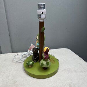 Lambs & Ivy woodland friends lamp. No shade included, good condition, working well. On/off switch on lamp. Measures approx 12-1/2" tall x 8" across at base. Bulb not included.
