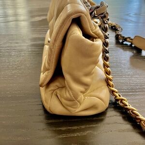 Lambskin Quilted Large Chanel 19 Flap Beige Gold and Silver Strap