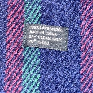 Lambswool holiday scarf blue green red striped winter accessory festive preppy