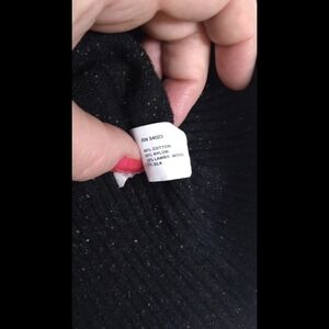 Super soft long sleeve sweater from Gap Factory. It's not solid black, as it has colored flecks throughout. The pictures with the tags show this best. Big cowl neck. Size L. Cotton, nylon, lambswool and silk. From fall of 2005.