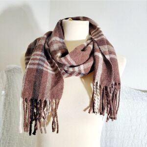 Lambwool 100% Pure Wool Brown Plaid Winter/Fall Scarf