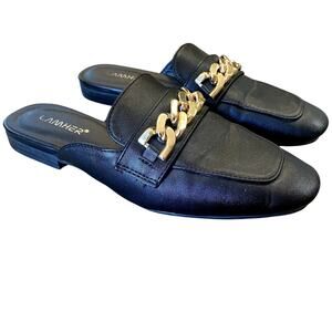 Lamher Women's Black Gold Chain Slip On Mules 6