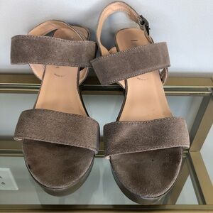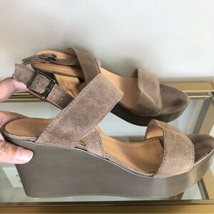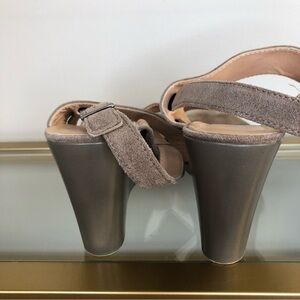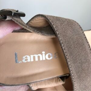 Lamica taupe suede upper strap sandal leather platform heel 39