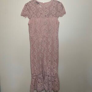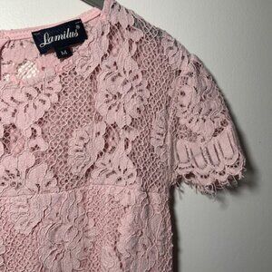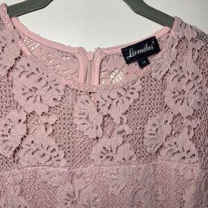Lamilus Soft Pink Lace Crochet Floral Wedding Cocktail Party Dress - Size M