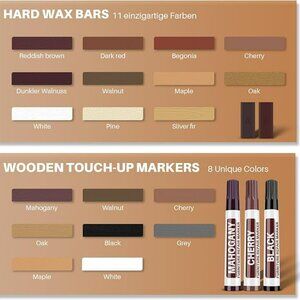 Multiple Color Vinyl Floor Repair Kit: High quality floor furniture repair wax is from A to K, with 11 most common wood colors and 8 colors furniture touch up marker,even mix colors to match your wood furniture,laminate floor,vinyl floor,Linoleum floor