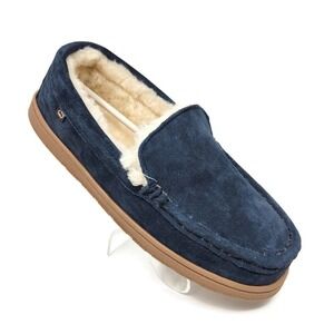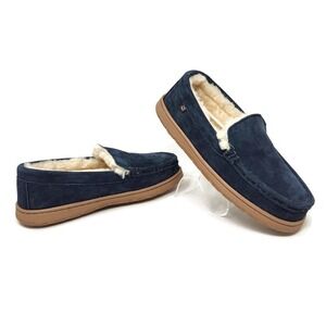 Lamo Harrison Moc Men's Moccasin Slipper Luxury suede - Navy, 8 New