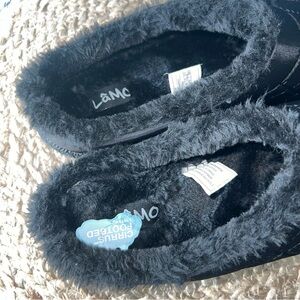 Mens Slip In Slipper with a Quilted Upper, Premium Faux Fur, Memory Foam Footbed.