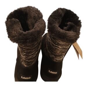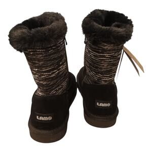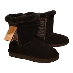 New with tags no box please review the photos. The Lamo Willow Suede Water And Stain Resistant Ankle Boots in Black, Size 10, are perfect for the casual occasion during the winter and fall seasons. With a round toe shape, flat heel, and ankle shaft style, these boots are not only stylish but also functional. The water-resistant suede upper material and faux fur lining ensure that your feet stay dry and warm. The black color and solid pattern make them versatile for various outfits, while the zipper closure and fur trim accents add a touch of flair. Made by the brand LAMO, these booties are a great addition to any woman's wardrobe.