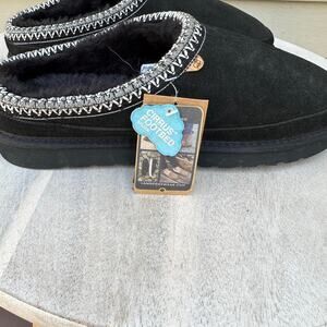 Lamo Womens Size 12 Suede Slippers Black Cirrus Footbed Cozy Fur Lined Slip-On