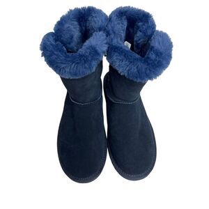 Lamo NWOT navy blue willow water and stain resistant suede boots size 8. Suede upper. Faux fur lining and footbed. Rubber outsoles.