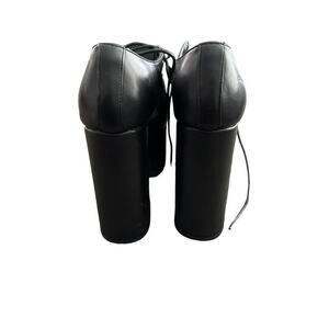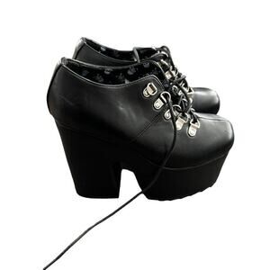 Lamoda Resolution Platform Boots your decision is final. These ankle boots have a vegan leather construction, front lace up closures with D-ring hardware, square toes, platform soles, and block heels.