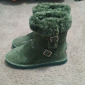 Lamo green faux fur lined boots Sz 8.5 EUC