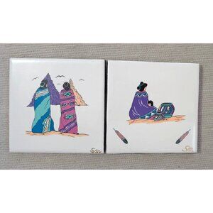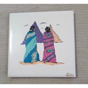These ceramic tiles tell a story of culture, tradition, and artistry. With intricate depictions of indigenous women in vivid hues, they capture a sense of history and heritage. Each 4.25" x 4.25" tile feels like a snapshot of a serene life, blending utility with a touch of timeless beauty.