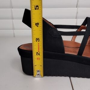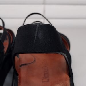 Lamour Des Pieds women's black leather open toe strappy platform sandals sz 8.5M.