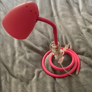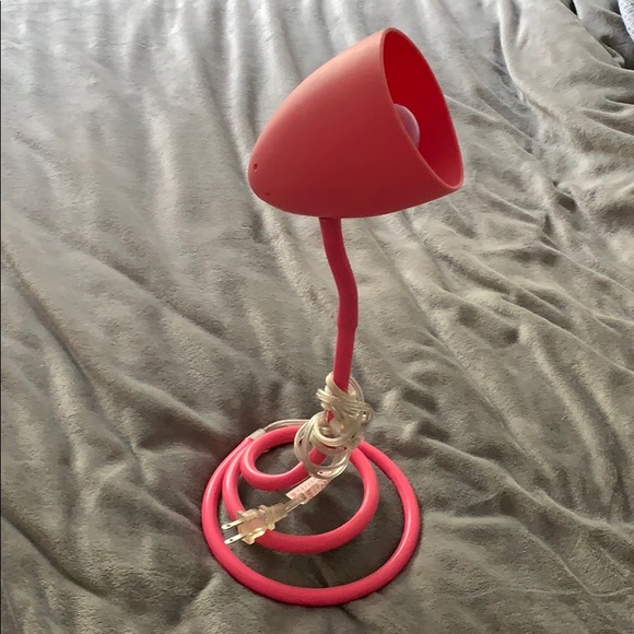 This pink flexible rubber lamp was used for a month. It still works and is in perfect condition. Perfect for a dorm room or bedroom.