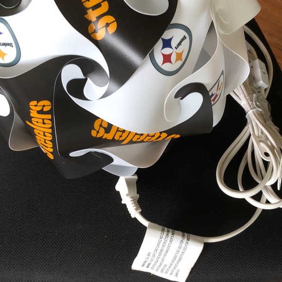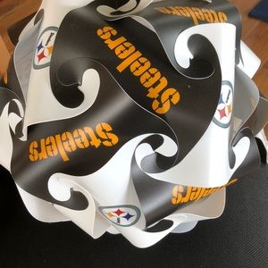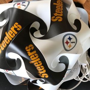Pittsburgh Steelers indoor hanging light. Not larger than 40watt bulb! Comes with hooks n cord has toggle switch