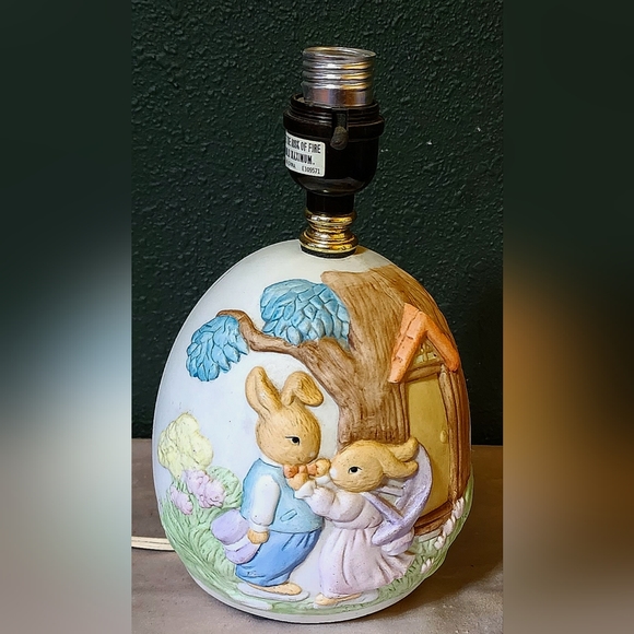 Vintage cute bunnies porelain lamp. Perfect addition to the nursery or kid's room!