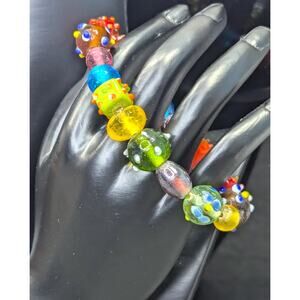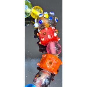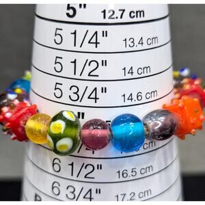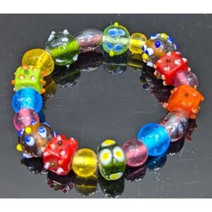 Lampwork Glass Bead Bracelet, Multicolored, Bumpy Glass, Size 6"