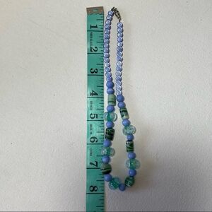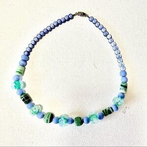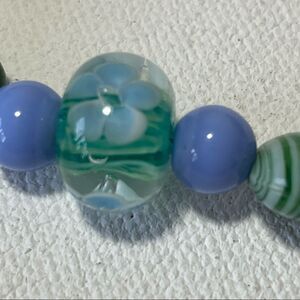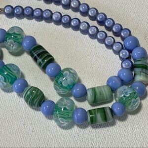 Lamp work bead necklace in light blue and green