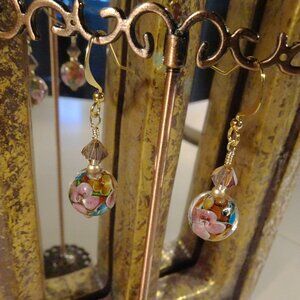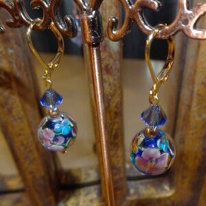 Lampwork earrings in petite 12 mm. Czech beads & Austrian crystals in six colors