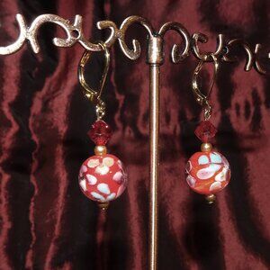 Fiori a Lume - Select from six options of handmade earrings designed with Czech lampwork beads and coordinated Austrian bicone crystals. Colors: 1 - scarlet, 2 - sapphire, 3 - honey, 4 - lavender, 5 - cobalt, and 6 - citrus (please choose); Earrings available in hooks or leverbacks (please choose).