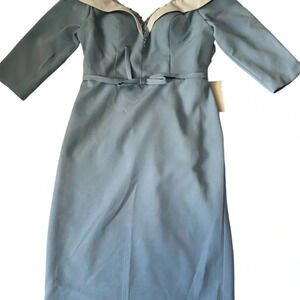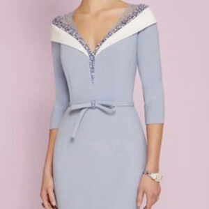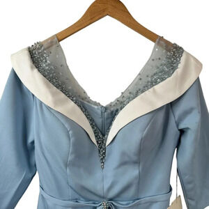 LanTing Mother of the Bride Blue V-neck dress with pearl Embellishments