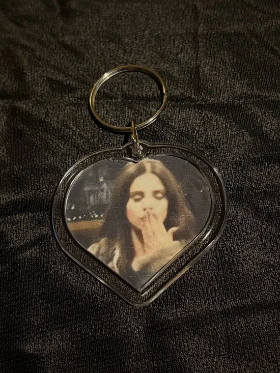 Lana Del Rey blowing kiss heart shaped acrylic keychain