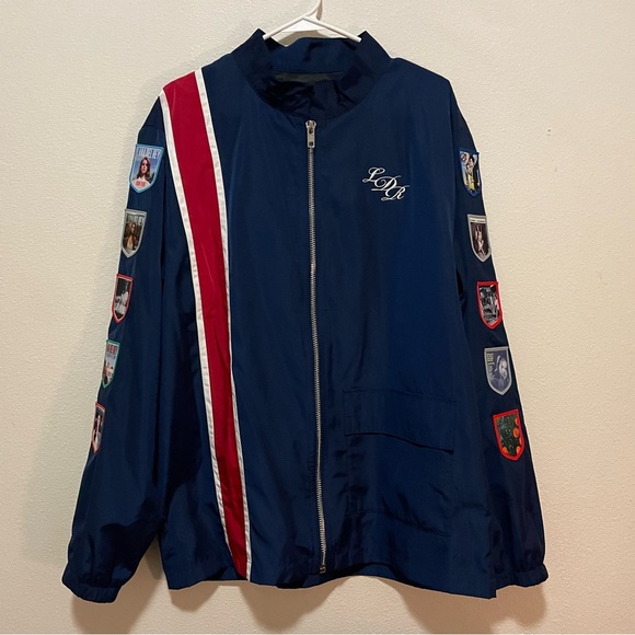 This jacket is the coveted Lana Del Rey racing jacket. It was purchased from her merch website in 2024. It’s a size Women’s L and features patches on the sleeves of her 9 studio albums and poetry vinyl.