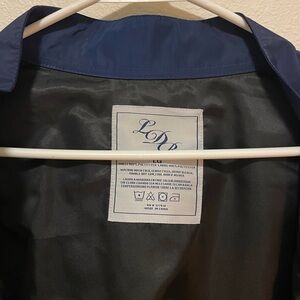 It has never been worn and is like-new. It has a pocket in the front and navy body with red and white stripes with white LDR embroidery. Comment any questions!