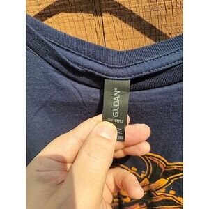 The product is a navy blue Gildan T-shirt featuring a rare design of a bear samurai, with a theme related to the band Lana Del Rey. The T-shirt is in size 2XL, designed for men in a regular fit. This unique and eye-catching shirt is sure to stand out and make a statement for fans of Lana Del Rey or those who appreciate distinctive graphic tees.
