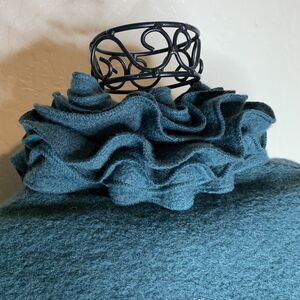 Lana Green Felted Wool Blend Ruffle Collar Cardigan Womens Size XS
