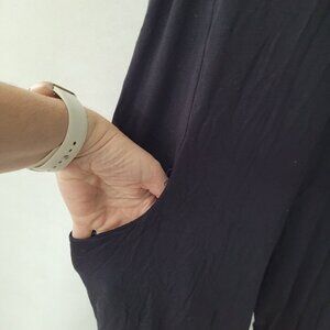 Lana Roux Jumpsuit Womens M Black Cropped Baggy Harem Stretch Racerback Rayon