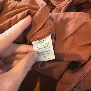Worn once. They are a rusty color 100% cotton.