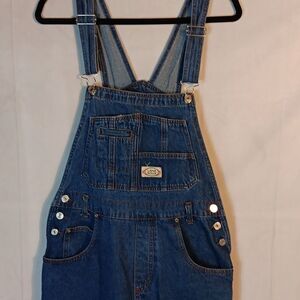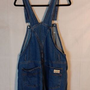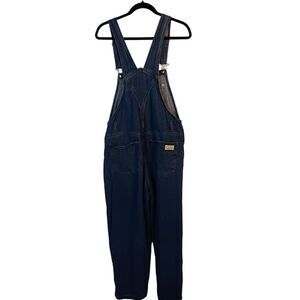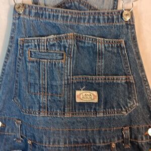 These blue denim Lana Roux women's Overalls are a size Large with a waist measuring 17" laying flat an inseam of 30.5". Adjustable straps and multiple pockets. In excellent condition.