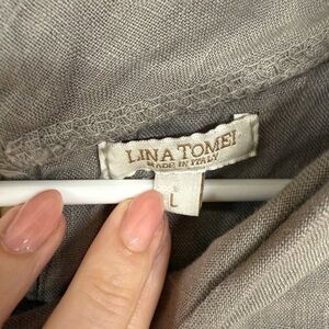 Lana Tomei Dress Size L Made In Italy Linen Polka Dot Tunic Pockets Beige