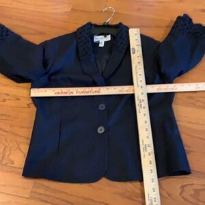 Lana Lee 6-petite blazer button up black jacket with detall collar & sleeves. Dress up your jeans or any outfit with this cute and stylish little jacket. Smoke free and pet free home in like new condition