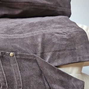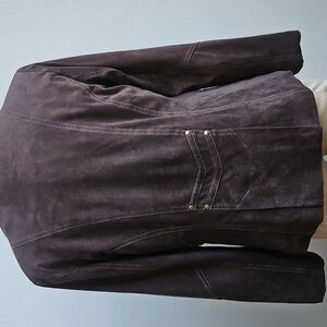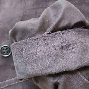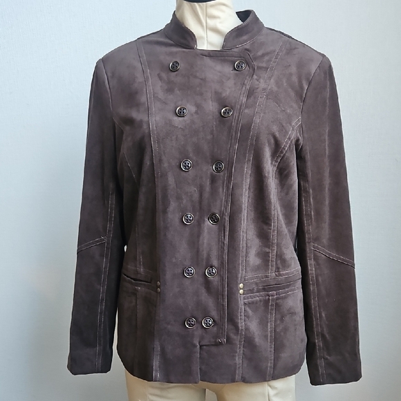 This stylish faux suede, double-breasted jacket offers a sophisticated look with its rich brown color. sleeves can be let out one more inch if needed. Lanalee Lot B size 8
