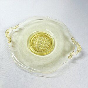 Lancaster Landrum Cane Topaz Two Handle Plate Lemon Yellow Vintage Glass