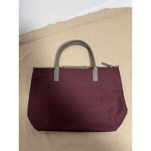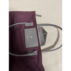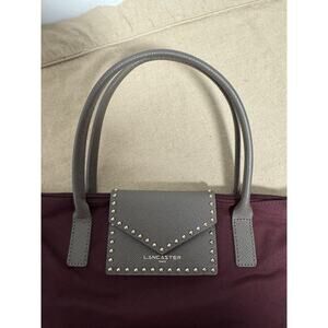 Lancaster Paris Tote Bag Womens Burgundy Gray Studded Flap Pocket Zip Handbag