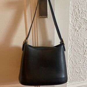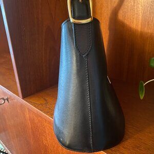 Chic bag in good used condition. Minor scuffs/scratches--please see photos for details. Features sleek gold hardware, a snap closure, and an outer zip-up pocket.
