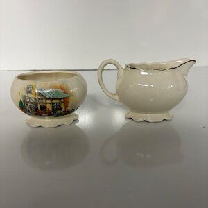 Lancaster Sandland Creamer & Sugar Bowl Set English Ware Cottage Gold Trim VTG