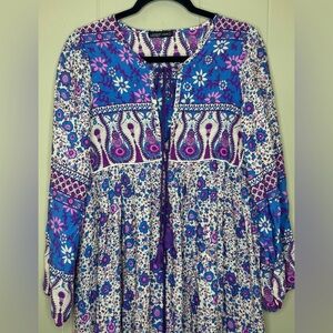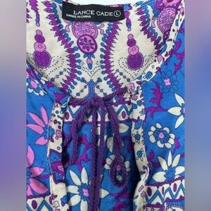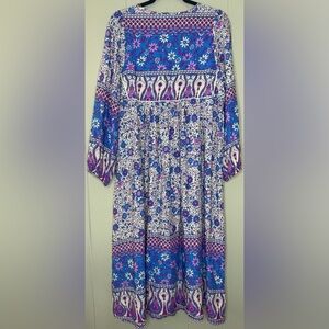 Lance Cade Boho Long Sleeve Cotton Peasant Midi Dress Size Large