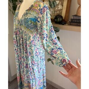Boho Maxi Dress Floral Print Long Sleeve Size S Lance Cade Festival Lagenloook