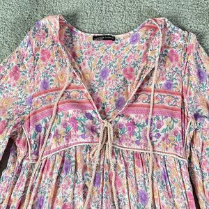 Lance Cade Maxi Dress Pink Floral Long Tassel Boho Prairie Cottage