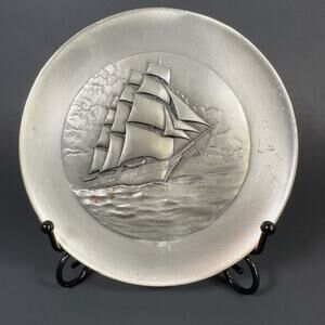Lance/Hudson Fine Pewter, Plate/Plaque Sailing Ships Decorative Set of 2 USA