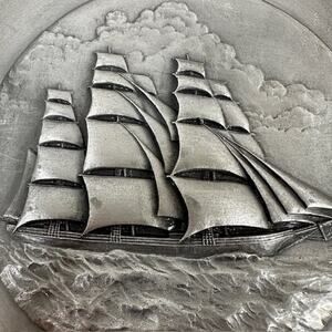 Lance/Hudson Fine Pewter, Plate/Plaque Sailing Ships Decorative 1970s Set of 2 USA