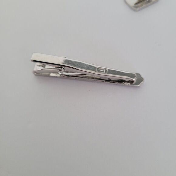 Lancel French Tie Clip Cufflinks Set Silver Tone Logo